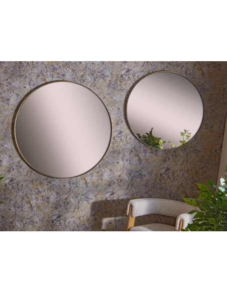 Espejo oro redondo 80d, una pieza versátil y decorativa que combina la fuerza del marco metálico dorado con la suavidad de la forma redonda. Su medida lo hace ideal para colocar sobre aparadores, cómodas o incluso en baños modernos, donde actúa como foco estético. Refleja la luz de manera natural y crea sensación de amplitud, aportando un acabado elegante sin sobrecargar el ambiente.