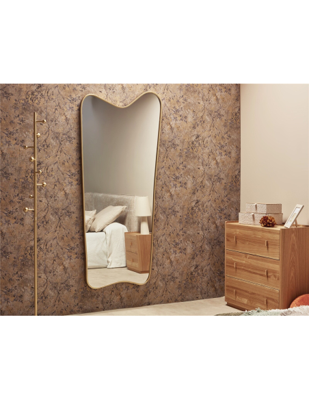 Espejo curvo oro 120 cm, un espejo de formas modernas en acabado oro, pensado para añadir sofisticación y luminosidad a la decoración. El marco metálico destaca con un brillo sutil que refleja la luz y realza la atmósfera de la estancia. Perfecto para espacios contemporáneos, este espejo es tanto práctico como decorativo, creando un punto focal elegante.
