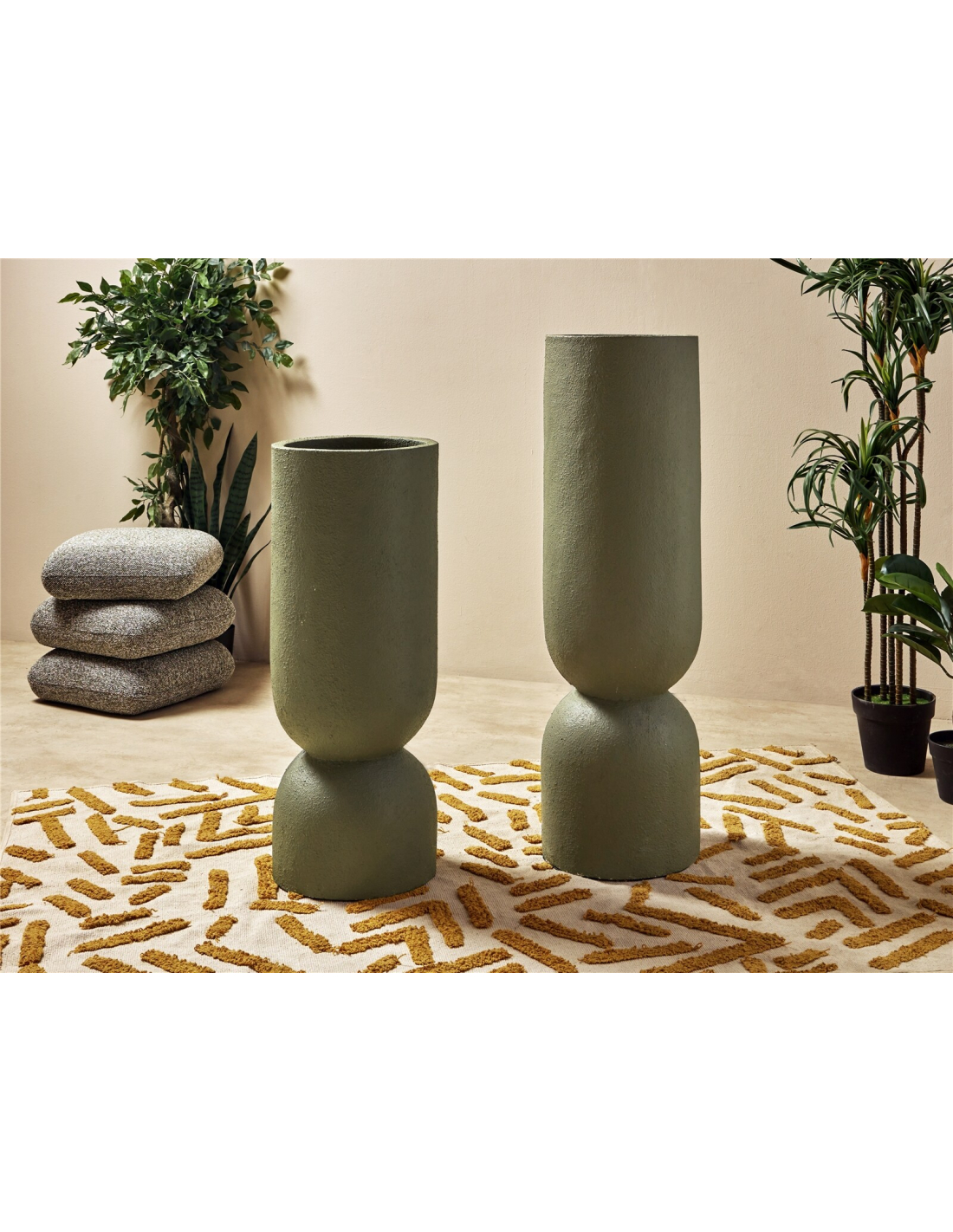 Set 2 jarrones símil piedra verde 100 cm