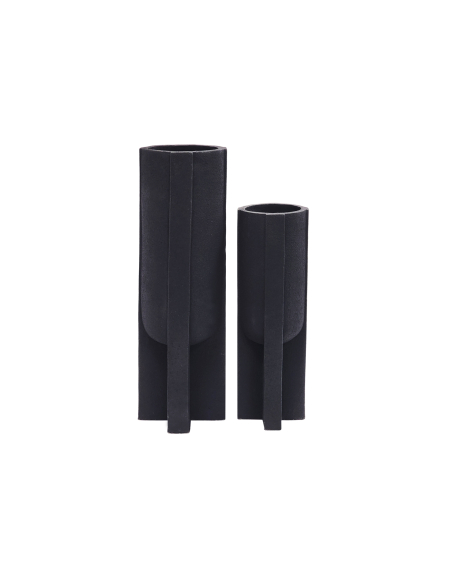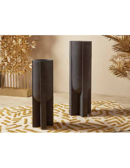 Set 2 jarrones símil piedra base cruz negro 101 cm