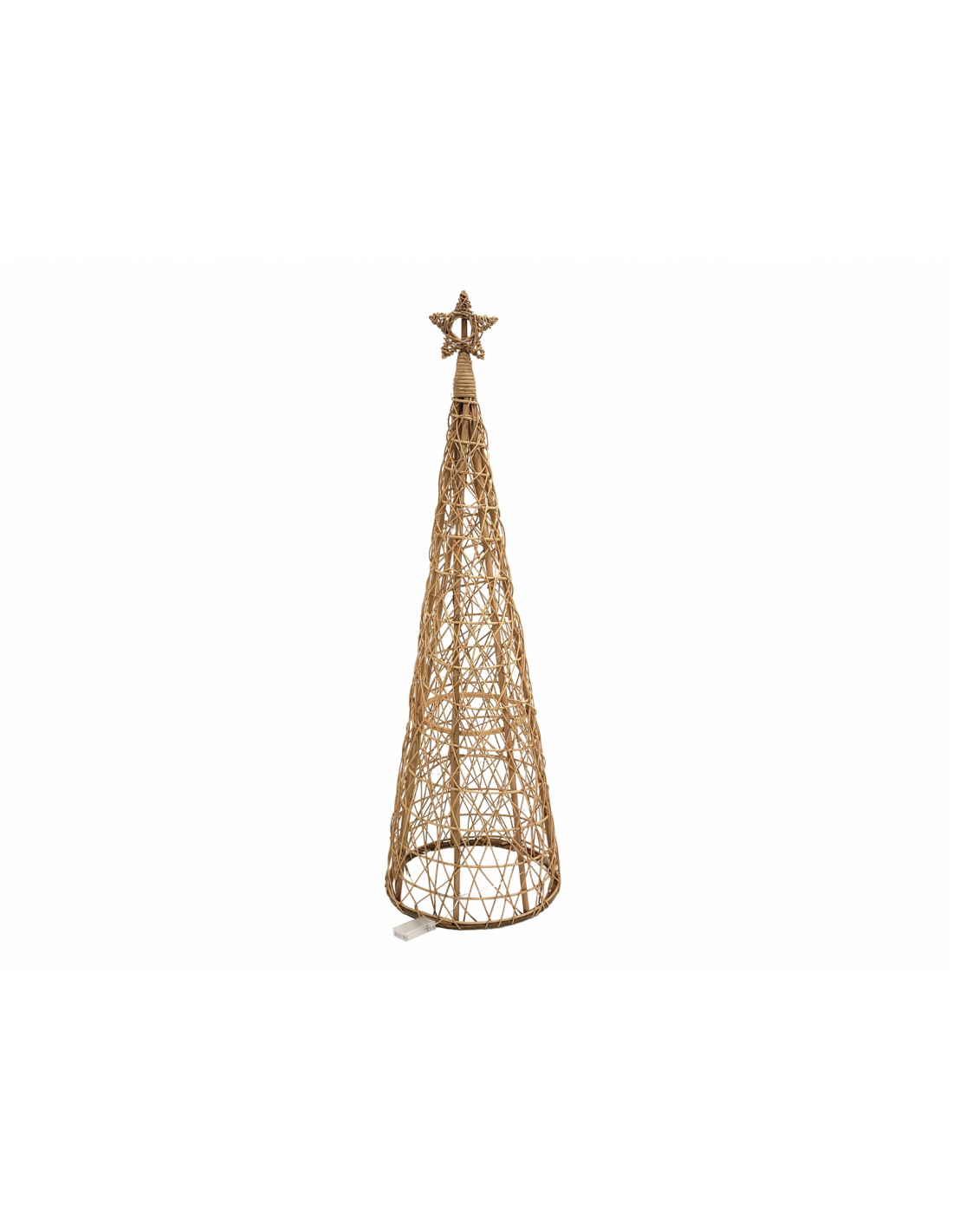 Árbol de navidad c/led a pilas 128 cm, fabricado con madera de paulownia y mimbre, aporta un estilo artesanal y cálido a la decoración navideña. Su diseño en forma de cono es ligero, moderno y fácil de integrar en distintos ambientes. Mide 128 cm de alto y destaca por su iluminación LED de luz cálida. Su estructura en fibras naturales resalta la decoración con un aire eco-friendly y minimalista. Es ideal para quienes buscan un árbol distinto al tradicional pero igualmente elegante. Su diseño ligero lo hace fácil de transportar y colocar en cualquier rincón. Una pieza que une lo rústico y lo moderno en perfecta armonía.