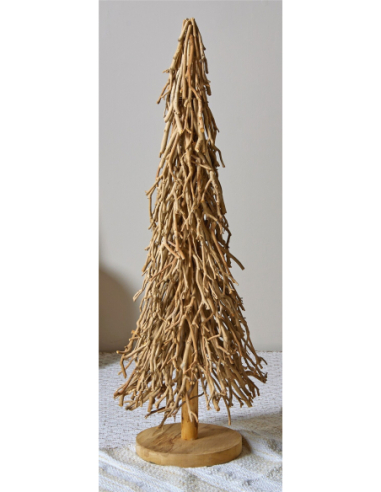 Árbol Navidad ramas té con pie madera 120 cm, con estructura artesanal que resalta las vetas y texturas de la madera natural. La base de madera lo hace firme y estable, permitiendo lucir sus ramas con un acabado auténtico y original. Su diseño aporta un aire sofisticado y cálido a los espacios, adaptándose tanto a estilos modernos como rústicos. Una pieza que invita a crear ambientes acogedores y llenos de encanto en cualquier rincón de la casa.