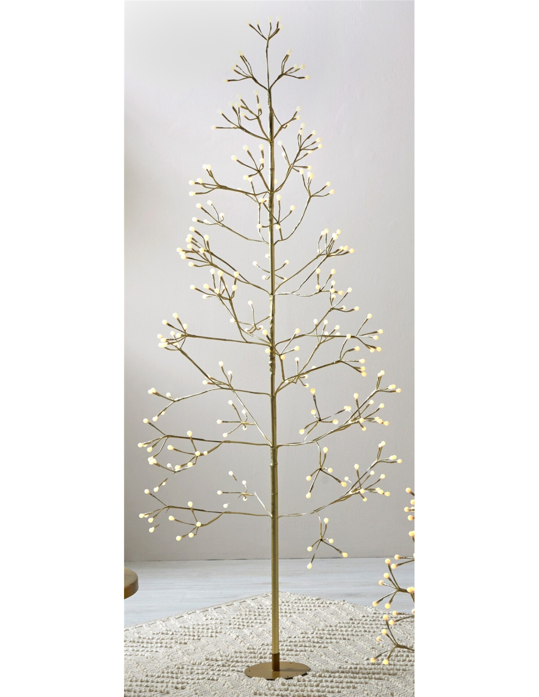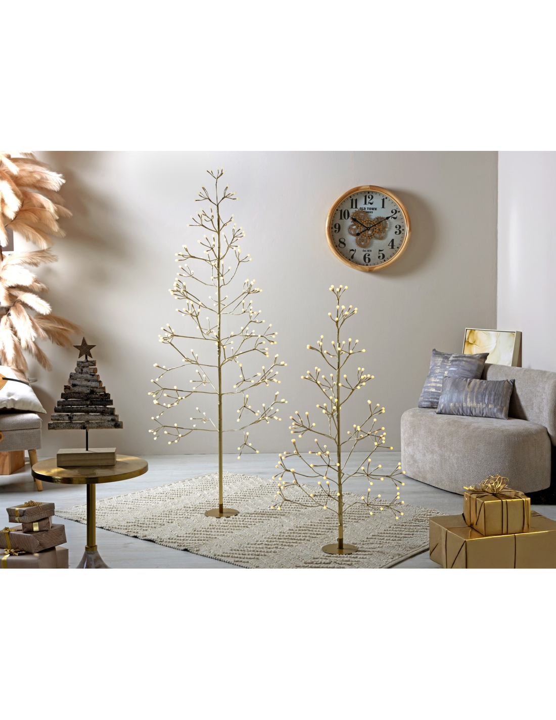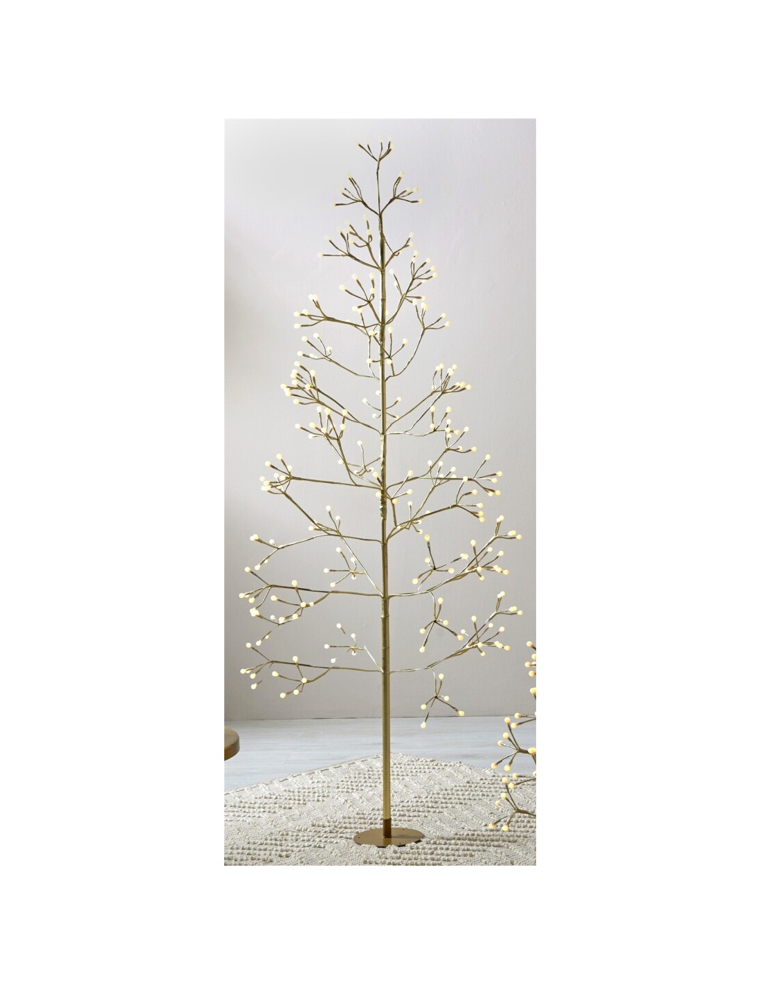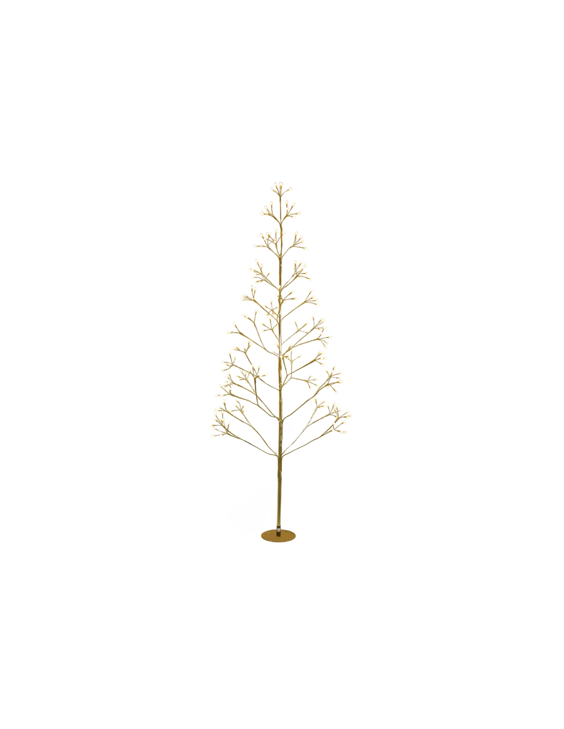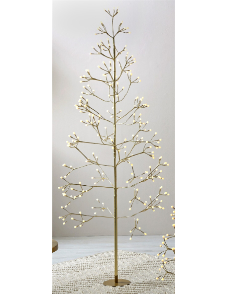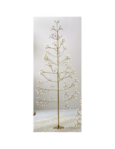Árbol led 9 funciones oro 180 cm, una opción decorativa imponente que destaca por su altura de 180 cm y sus 200 luces LED cálidas distribuidas a lo largo de su estructura. Su acabado dorado aporta un aire lujoso y distinguido, convirtiéndolo en el protagonista de cualquier ambiente festivo. Sus 9 modos de iluminación ofrecen gran versatilidad, desde un resplandor fijo y acogedor hasta destellos dinámicos que realzan el espacio. La base metálica de 18 cm de diámetro asegura estabilidad y firmeza incluso en áreas más amplias. Es fácil de montar y transportar, ideal para interiores donde se busca un efecto impactante. Su diseño minimalista permite integrarlo en distintos estilos de decoración. Funciona con un cable de 5 m que brinda flexibilidad al ubicarlo. Un árbol que mezcla modernidad, calidez y elegancia para cualquier celebración.