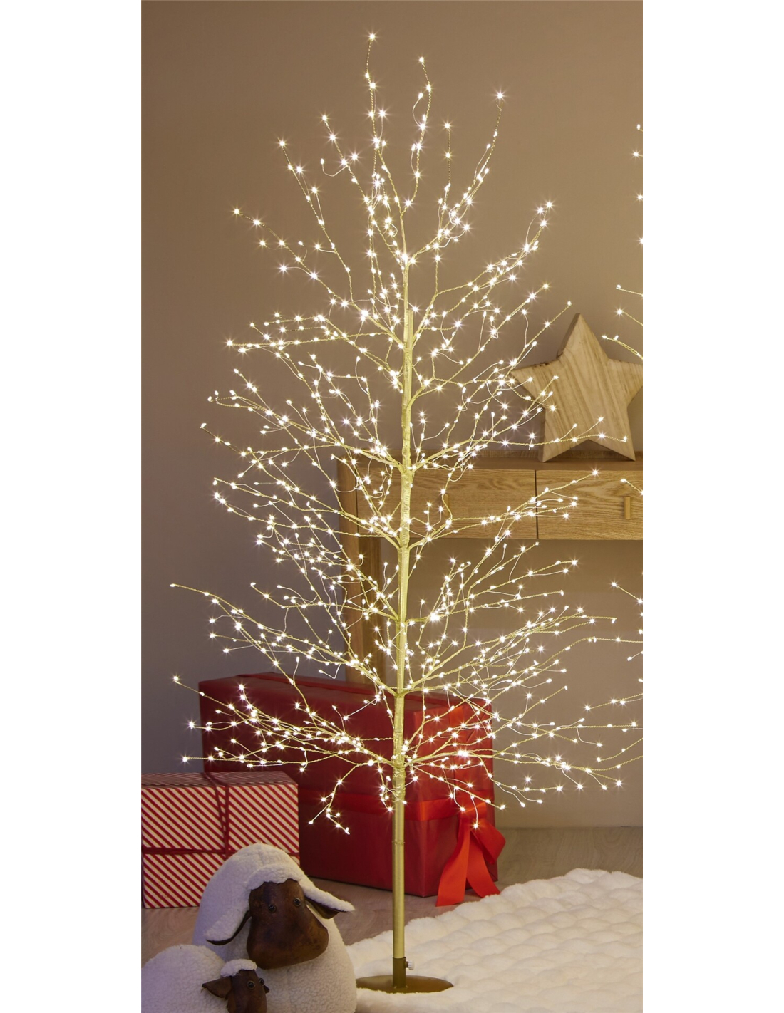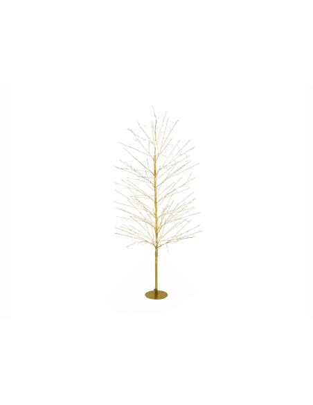 Árbol Navidad micro led oro 150 cm, un diseño estilizado que destaca por su elegancia gracias a sus 1000 micro LED de tono cálido. Su acabado dorado lo convierte en un elemento lujoso que ilumina con sutileza y modernidad. Con base metálica de 16 cm de diámetro y cable de 5 m, es fácil de instalar y mantener estable. Su altura de 150 cm lo hace ideal para espacios medianos, aportando un toque sofisticado sin recargar. Su luz cálida genera atmósferas acogedoras para reuniones familiares o celebraciones. Es versátil y se integra tanto en estilos clásicos como modernos. Una pieza práctica y decorativa que aporta calidez y distinción.