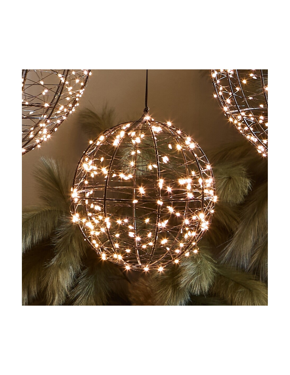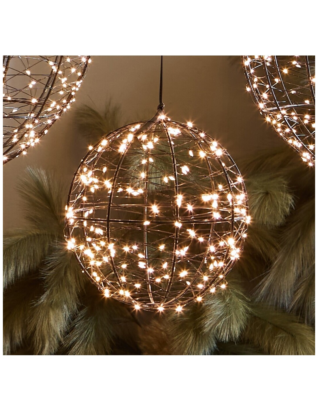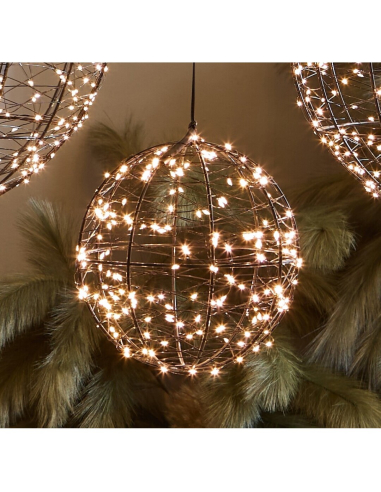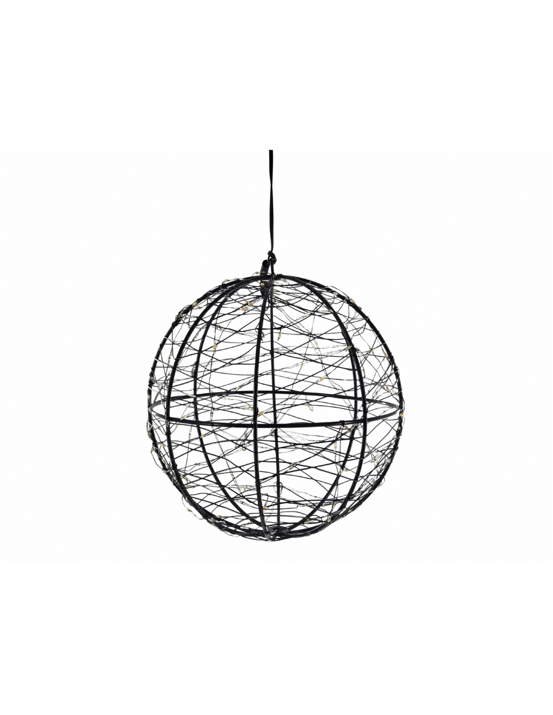Bola negra leds 20d cm 200 leds, una esfera luminosa que combina estilo moderno con encanto navideño, ideal para colgar en interiores o exteriores cubiertos. Su estructura metálica en tono negro crea un contraste elegante con las 200 luces LED cálidas que envuelven toda la superficie, aportando una iluminación sutil y decorativa. Funciona con pilas AA, lo que la hace práctica y fácil de colocar sin necesidad de enchufes cercanos. Con un diámetro de 20 cm, es perfecta para complementar guirnaldas o para agrupar en conjuntos de varias bolas de distinto tamaño. Incluye cable de 5 metros que facilita la instalación. Fabricada en metal y led de alta calidad para asegurar durabilidad. Una opción versátil para dar un toque contemporáneo a tus celebraciones.