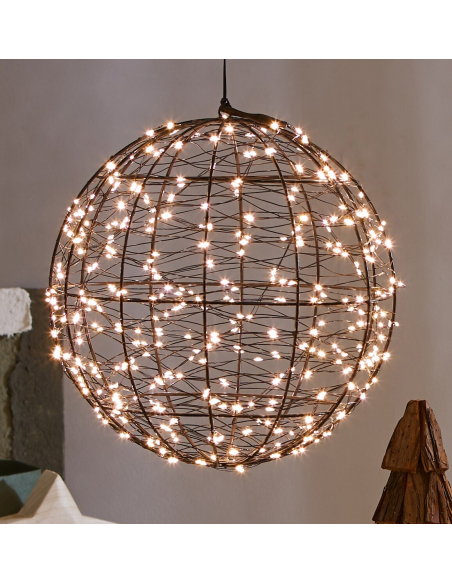 Bola negra leds 30d cm 500 leds, pensada para destacar en espacios donde quieras añadir un foco decorativo elegante y moderno. Con un diámetro de 30 cm y 500 luces LED cálidas, logra un brillo envolvente que resalta la geometría de la esfera metálica negra. Es perfecta para ambientes sofisticados, tanto en interiores como en terrazas o galerías techadas. Su cable de 5 metros permite mayor comodidad en el montaje y flexibilidad en la ubicación. Gracias a su diseño duradero en metal, se mantiene firme y resistente con el paso del tiempo. Una pieza decorativa que aporta luz ambiental cálida sin perder el toque minimalista. Ideal para quienes buscan una decoración navideña contemporánea.