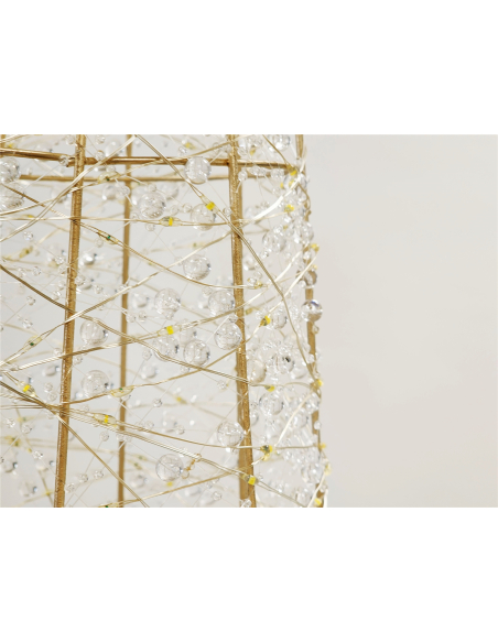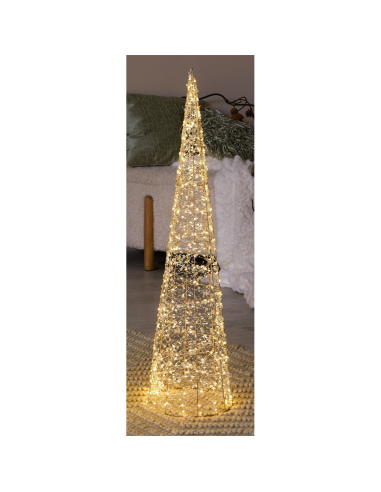 Cono oro perlas 100 cm 600 leds, pensado para quienes buscan una decoración luminosa que combine altura y un acabado refinado. Con un metro de alto y 600 luces LED cálidas, este cono logra un efecto envolvente gracias a la textura creada por sus perlas transparentes. Está fabricado en metal y PVC de gran calidad, lo que le brinda resistencia y un aspecto delicado al mismo tiempo. Su diseño estilizado en dorado se adapta fácilmente a diferentes estilos decorativos, desde los más clásicos hasta los modernos. Incluye cable de 5 metros para facilitar su instalación en distintos rincones del hogar o espacios comerciales. Es perfecto para colocar en solitario o en conjunto con conos de otras alturas, logrando una composición visual equilibrada. Ideal para resaltar entradas, salas o escaparates con un toque festivo y elegante.