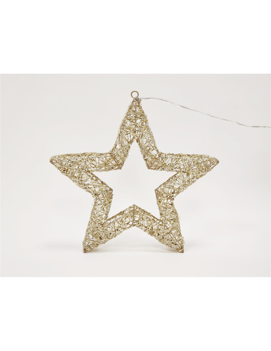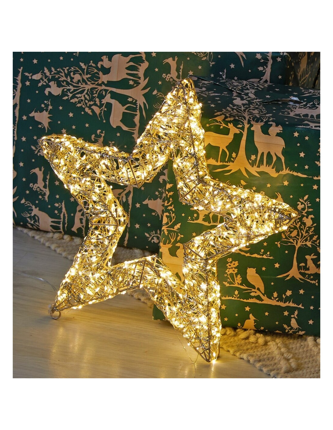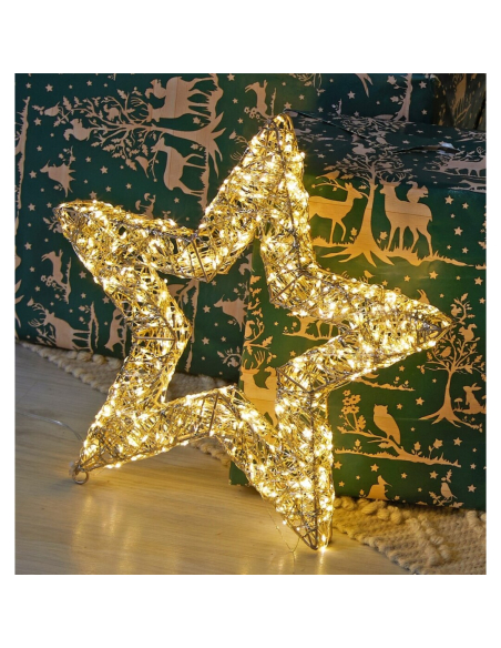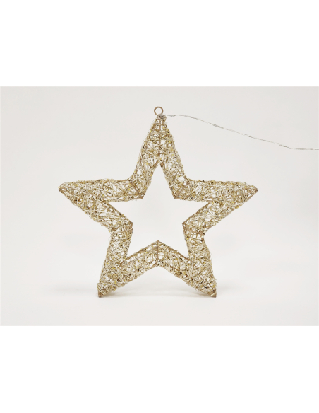 Estrella 3D oro pet 35 cm 800 leds, una figura tridimensional que resalta por su forma definida y su espectacular iluminación con 800 LED cálidos, ideales para generar un ambiente acogedor y festivo. Con un diseño en acabado dorado brillante y estructura en metal con PVC, combina resistencia y estilo en una pieza compacta de gran presencia visual. Sus 9 modos de funcionamiento permiten variar entre luz fija y diferentes ritmos de parpadeo, adaptándose al tipo de decoración que busques. Es perfecta para colocar en mesas, repisas o incluso como centro de mesa luminosa, aportando un encanto especial en celebraciones y eventos. El transformador de 31V 3,6W asegura un consumo eficiente, mientras que su cable de 5 metros facilita la conexión. Además, su protección IP44 permite un uso seguro en interiores y espacios cubiertos. Una opción versátil que combina modernidad y tradición con gran estilo.