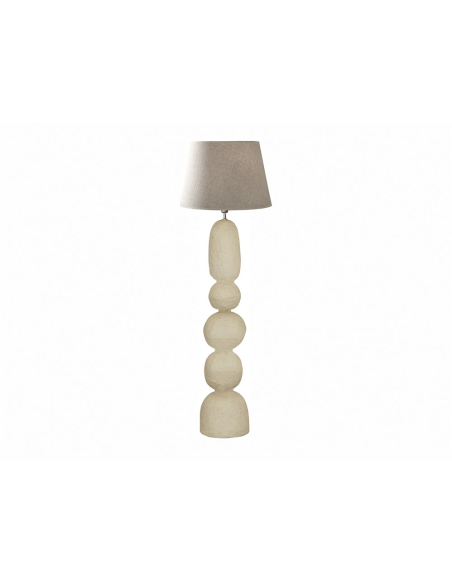Lámpara de pie Adom geométrica blanca. En la lámpara Adom encontramos un diseño muy original, con una base en forma de tótem en papel maché y una pantalla clásica de tela. Una lámpara perfecta para espacios escandinavos contemporáneos y minimalistas.