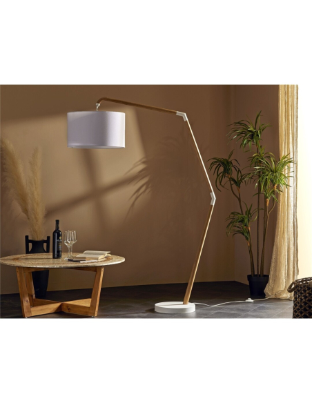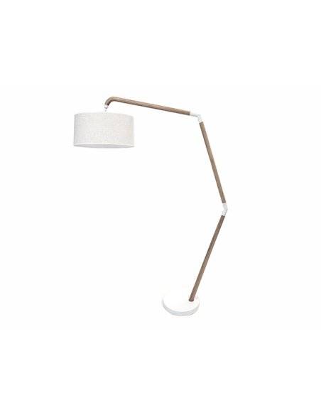 Lámpara de pie Tucker madera y pantalla blanca. Una lámpara de pie en forma de arco, pero con un diseño más actual. La lámpara de pie Tucker cuenta con una estructura angular de madera, y es ideal para coronar un salón o una pequeña mesa de comedor.