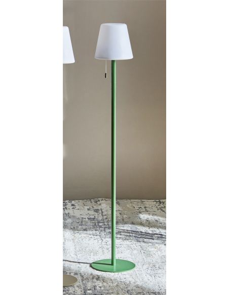 Lámpara de pie led Claren verde 106 cm, diseñada para destacar con un acabado verde que aporta frescura y originalidad a cualquier espacio. Ofrece cinco modos de uso, incluyendo luz cálida regulable y opción RGB para crear atmósferas dinámicas. Funciona con batería recargable y se carga en pocas horas, lo que garantiza practicidad y movilidad. Su formato estilizado encaja en salones, terrazas cubiertas o dormitorios modernos, convirtiéndose en un punto focal decorativo y funcional al mismo tiempo.