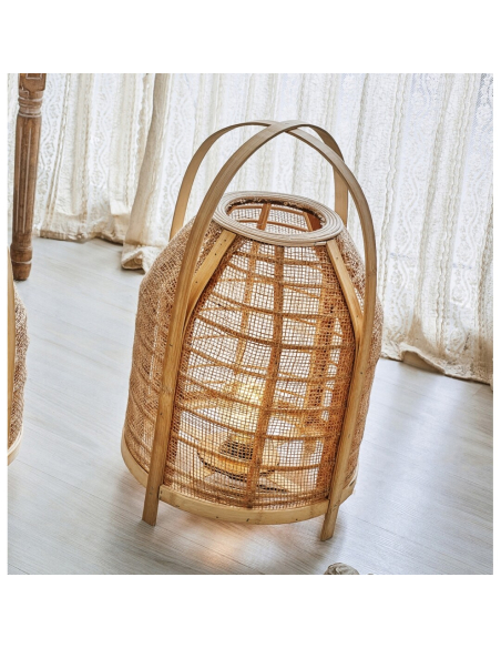 Lámpara de mesa Yoshi 50 cm. Con esta lámpara de farolillo de mimbre natural podrás disfrutar de una iluminación muy bonita. Su estructura a la vista y distintas texturas lo transforman en una pieza de decoración ideal.