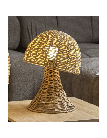 Lámpara de mesa Kure 39 cm. Una lámpara de sobremesa pequeña y muy bonita, para iluminar con calidez tus espacios. Ideal para un salón o para la mesilla de noche, la lámpara Kure destaca por su entramado de fibras naturales.