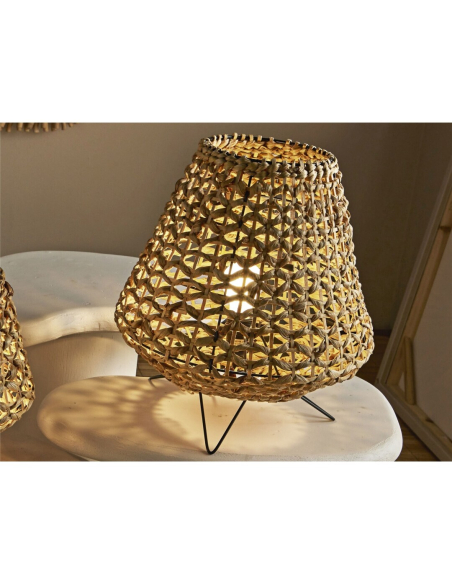 Lámpara de mesa Necker 44 cm. Con un diseño rústico y moderno, la lámpara de sobremesa Necker es perfecta para cualquier espacio. Su cuerpo de fibras naturales contrasta con el metal negro de sus patas, creando una pieza muy bonita.