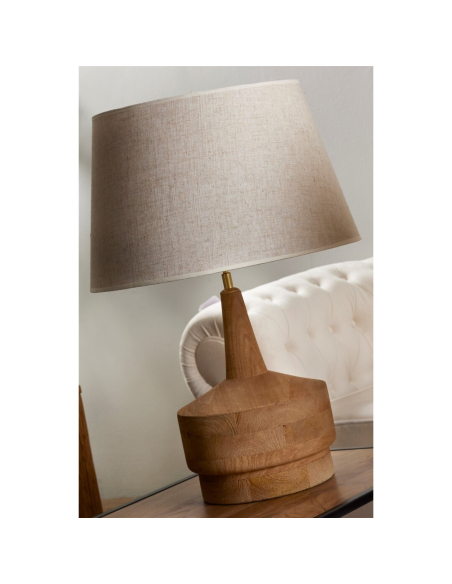 Lámpara de mesa Caplin base madera natural. Con un diseño original y elegante, la lámpara de sobremesa Caplin es ideal para un dormitorio, salón o recibidor. Su pie de madera natural y pantalla beige le permite adaptarse a cualquier espacio.