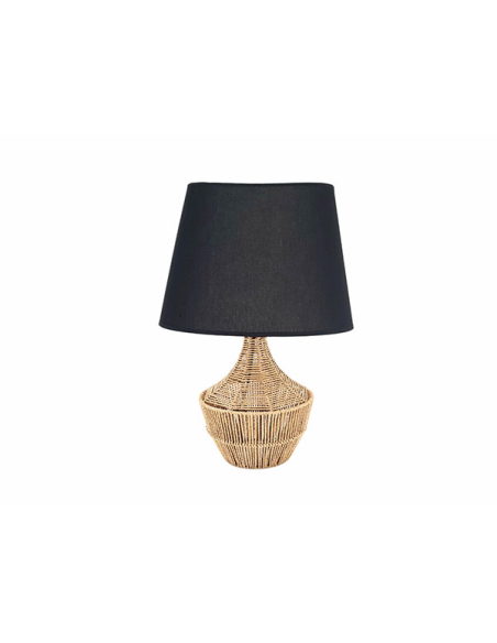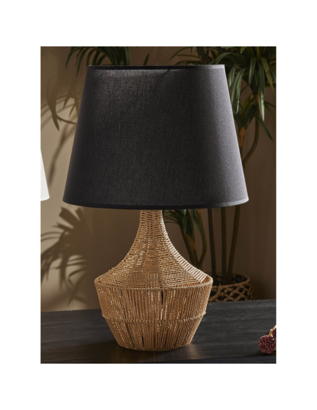 Lámpara de mesa Witsa negra. Si buscas una lámpara bonita y moderna, esta es la indicada. La lámpara de sobremesa Witsa combina un cuerpo de fibras naturales original con una pantalla negra para crear una pieza única.