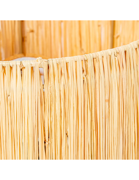 Lámpara de sobremesa de ratán cilíndrico 36 cm, presenta un diseño cilíndrico de doble altura, fabricado con ratán natural cuidadosamente tejido a mano. Su estructura de fibras naturales permite que la luz se difumine de manera suave y uniforme, creando un ambiente cálido y relajante. Ideal para colocar en mesas auxiliares, escritorios o mesitas de noche, esta lámpara se adapta a una gran variedad de estilos decorativos, desde bohemio hasta contemporáneo. Además, su enchufe y cable de alta calidad garantizan un funcionamiento seguro y duradero, aportando tanto funcionalidad como estética a cualquier rincón del hogar.