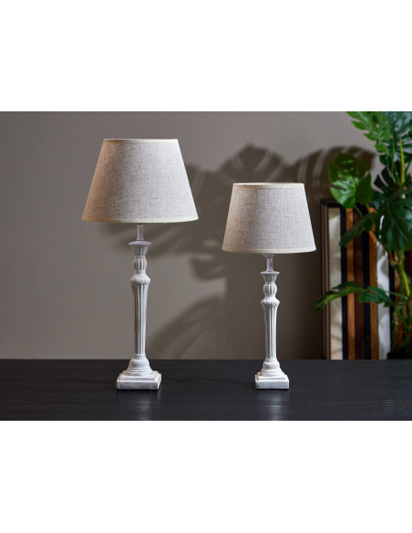 Lámpara de sobremesa Heli pie beige 52 cm, con una base que simula ser una piedra tallada, esta lámpara de sobremesa, es una pieza llamativa y elegante. Su pantalla, de tela, difumina la luz, creando un ambiente cálido. Su tamaño la hace ideal para colocar en mesas auxiliares. Esta lámpara es perfecta para colocar en una mesa auxiliar, una mesita de noche o una consola, añadiendo un toque de luz ambiental y un elemento decorativo único a tu espacio. Su diseño versátil se adapta a una variedad de estilos, desde los más rústicos y bohemios hasta los más modernos y minimalistas.