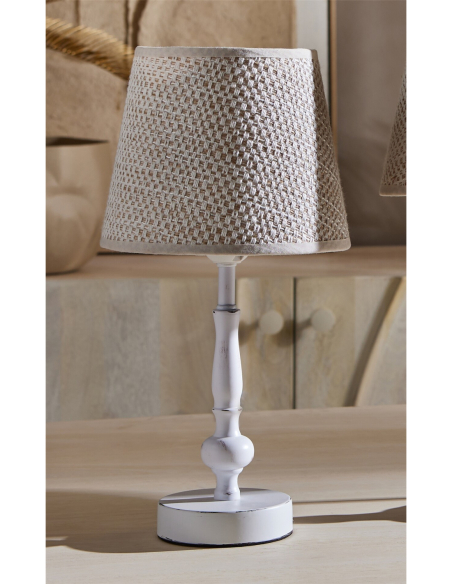 Set 2 Lámparas sobremesa proa pie natural 36 cm, un conjunto de dos lámparas con un diseño original, que combina una base de madera con forma de letra "C", con una pantalla de forma clásica. Ideales para colocar en una mesa de noche, o sobre una mesa auxiliar en el living. Estas lámparas son una forma sencilla y elegante de añadir un toque de luz y estilo a cualquier espacio.