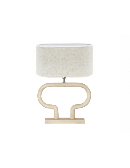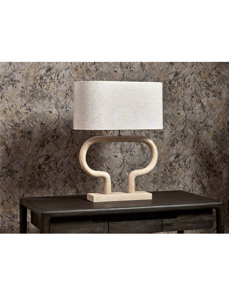 Lámpara de sobremesa Demeter madera 40 cm, la base elaborada en madera natural, presenta una forma única y sorprendente: dos "U" invertidas que se entrelazan, creando un juego visual de curvas y contracurvas. Esta estructura, a la vez sólida y ligera, aporta un toque de originalidad y sofisticación a cualquier espacio. La pantalla cilíndrica, confeccionada en una tela de tono claro, difunde la luz de manera suave y uniforme, creando un ambiente cálido y acogedor. Esta lámpara es perfecta para aquellos que buscan una pieza que combine la funcionalidad con un diseño audaz y contemporáneo.