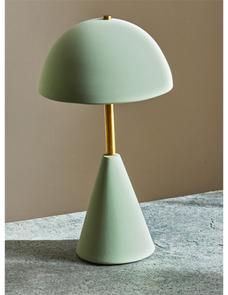 Lámpara de sobremesa Vesta verde 40 cm, ofrece una presencia más imponente gracias a su mayor altura, con la misma combinación de cerámica verde y elementos metálicos. Su diseño minimalista con un punto de color la convierte en una lámpara perfecta para espacios de inspiración moderna. Funciona como pieza decorativa y funcional, aportando luz ambiente en cualquier estancia. El tono verde contrasta con interiores neutros, creando un efecto llamativo. Ideal para quienes desean un detalle decorativo con carácter y frescura.