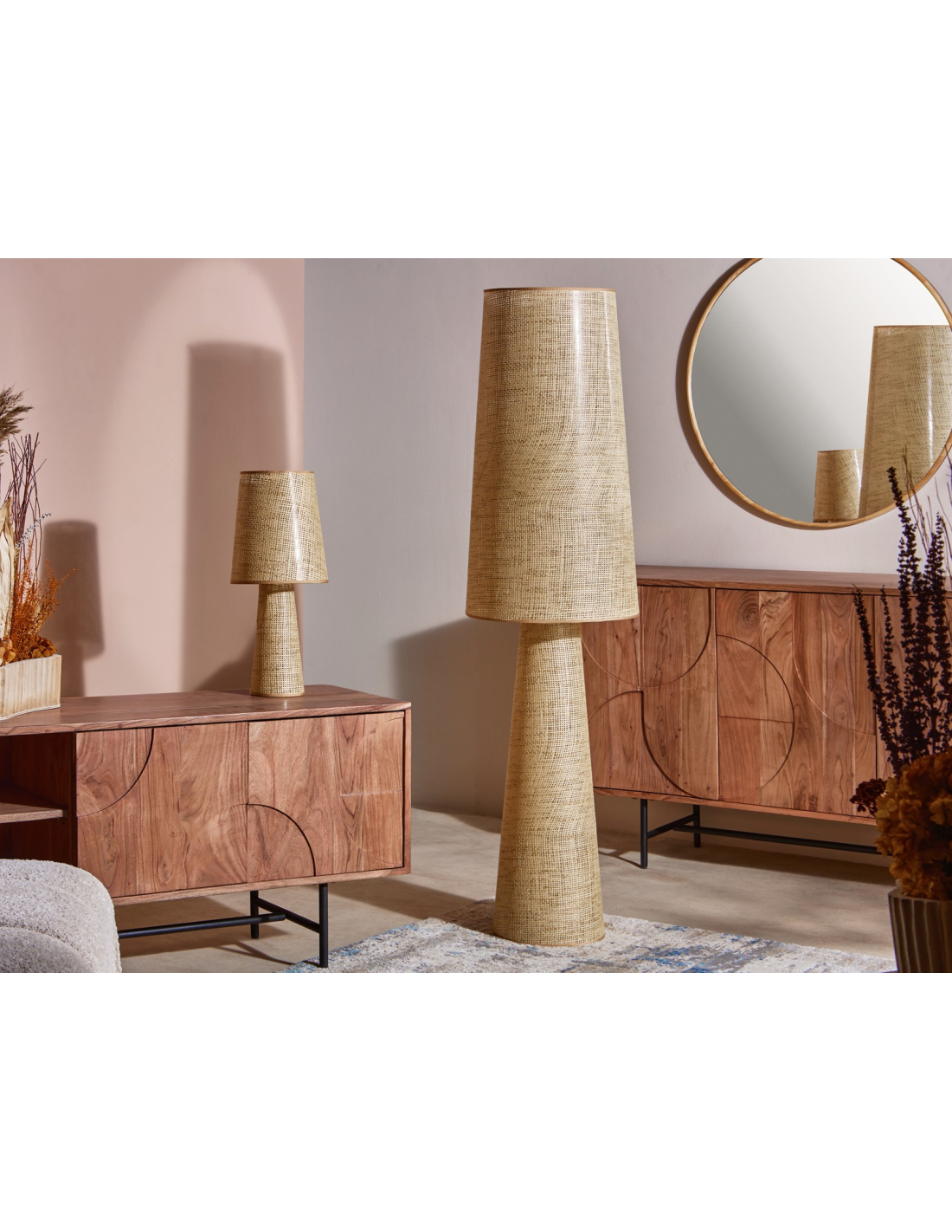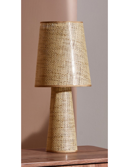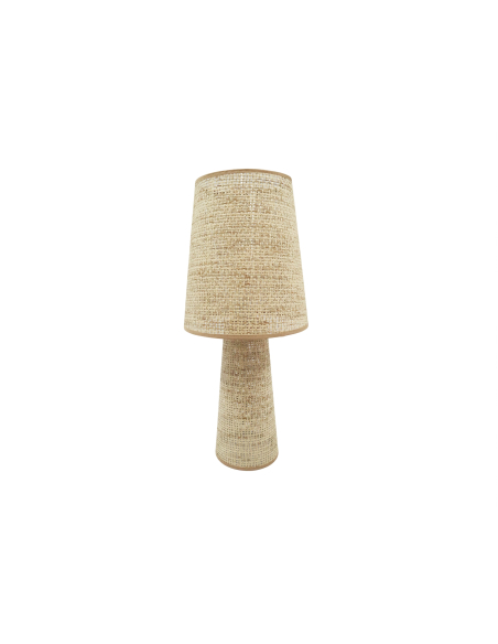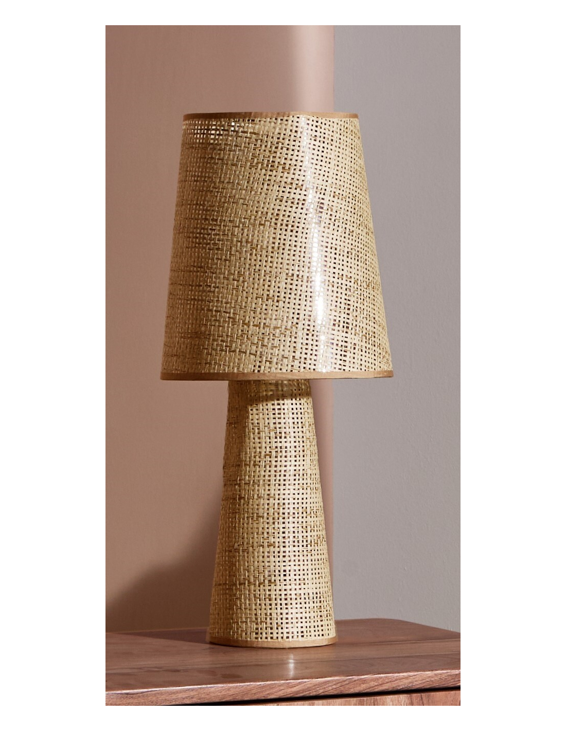 Lámpara de sobremesa Nash 50 cm, aporta un toque artesanal con su pantalla en papel imitación ratán que deja pasar la luz suavemente. Su diseño compacto la hace perfecta para decorar mesillas, cómodas o rincones de lectura. Con un estilo natural y atemporal, realza cualquier espacio aportando calidez y armonía. Se adapta fácilmente a diferentes estilos, desde lo bohemio hasta lo contemporáneo. Su ligereza permite moverla y cambiarla de sitio según las necesidades. Una lámpara versátil que combina practicidad y encanto en una misma pieza.