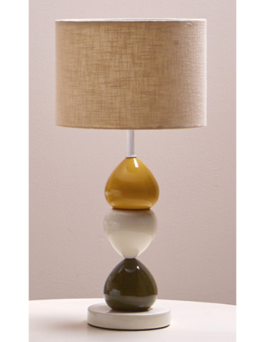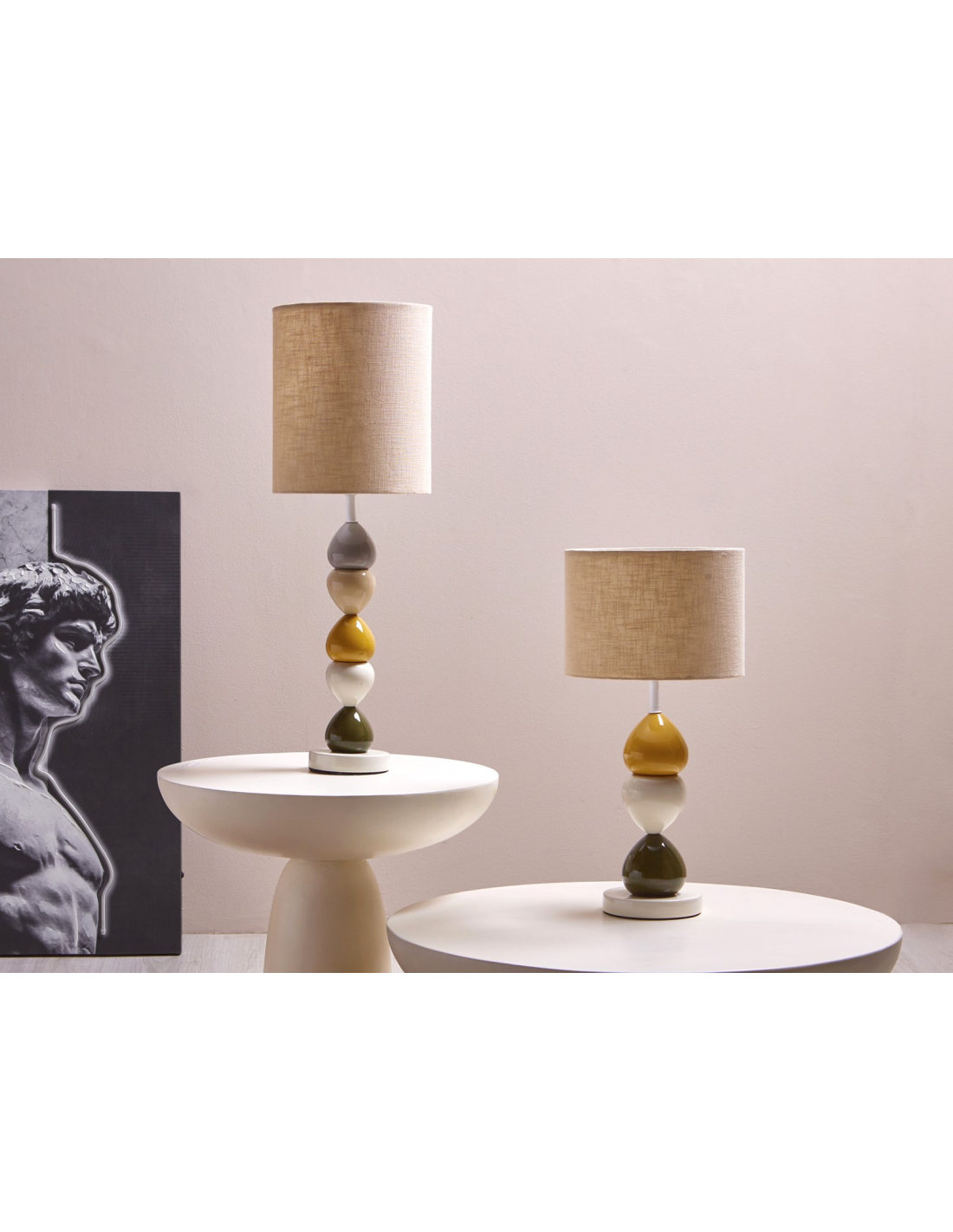 Lámpara de sobremesa Askella 50 cm, con estructura de cerámica en tonos combinados y pantalla textil que difunde la luz suavemente. Su estética divertida y elegante a la vez aporta dinamismo al espacio. Perfecta para aportar un acento decorativo lleno de color y estilo en cualquier habitación. Su formato más reducido la hace ideal para mesillas o escritorios, aportando frescura sin recargar. Una opción excelente para dar un aire renovado a estancias juveniles o modernas. Versátil y práctica, combina diseño llamativo con funcionalidad.