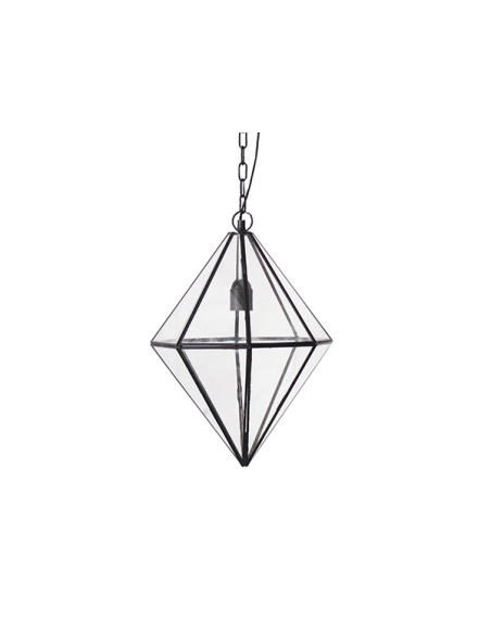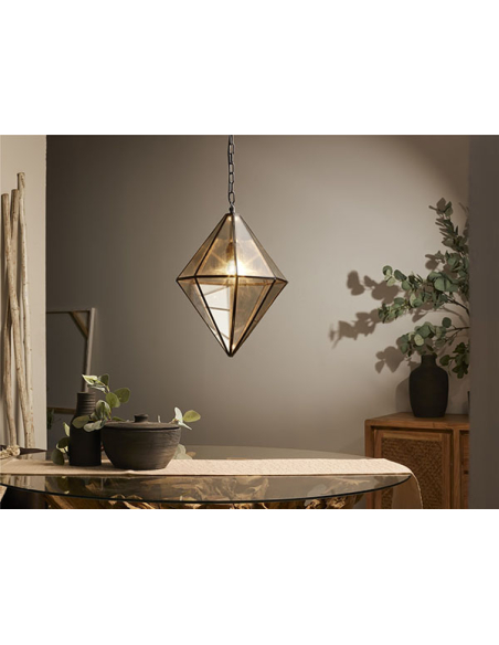Lámpara de techo flora con forma de rombo y pantalla de cristal decorado y estaño.
