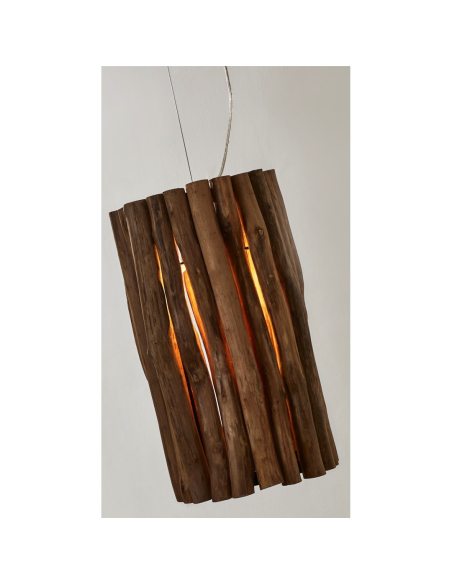 Lámpara colgante Xiloh ramas 25 cm. Ideal para espacios rústicos, la lámpara Xiloh aporta estilo gracias a su diseño con maderas de teca naturales. Y por su forma pequeña y alargada, es perfecta para instalar sobre una barra o una mesa.