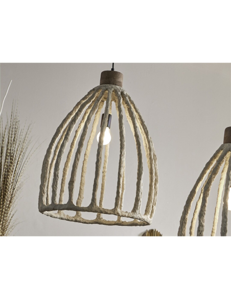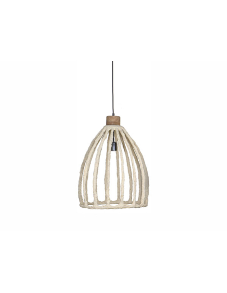 Lámpara de techo Akil blanca 70 cm. Una lámpara colgante minimalista, pero a la que no le falta estilo. La lámpara Akil tiene una estructura en forma de jaula de papel maché, que deja pasar la luz y es ideal para salones o dormitorios.