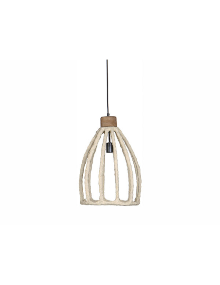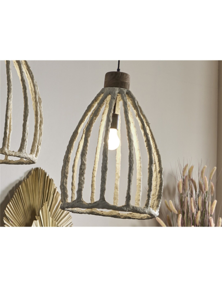 Lámpara de techo Akil blanca 58 cm. Con un diseño original, la lámpara colgante Akil es ideal para dormitorios o recibidores. Su estructura en forma de jaula en papel maché crea una pieza rústica y minimalista.