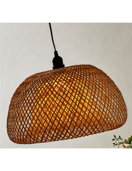 Lámpara de techo Nanda 43 cm. Con un entramado de bambú y una estructura redondeada, la lámpara colgante Nanda es ideal para espacios rústicos, ibicencos y escandinavos. Por su entramado, deja pasar la luz de una forma muy cálida y acogedora.