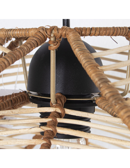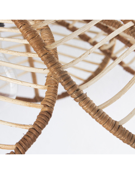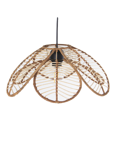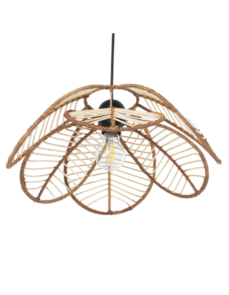 Lámpara de techo flor ratán, combina diseño artesanal y funcionalidad, ideal para aportar calidez y estilo a tus espacios. Su estructura está meticulosamente tejida con ratán auténtico, creando una pieza ligera pero resistente que se adapta a ambientes modernos, bohemios o rústicos. Su diseño abierto permite una difusión de luz suave y cálida, creando una atmósfera acogedora en salones, comedores o dormitorios. Además, es una elección sostenible que realza la decoración natural de cualquier hogar, siendo una pieza atemporal que destaca tanto en interiores como en exteriores cubiertos.