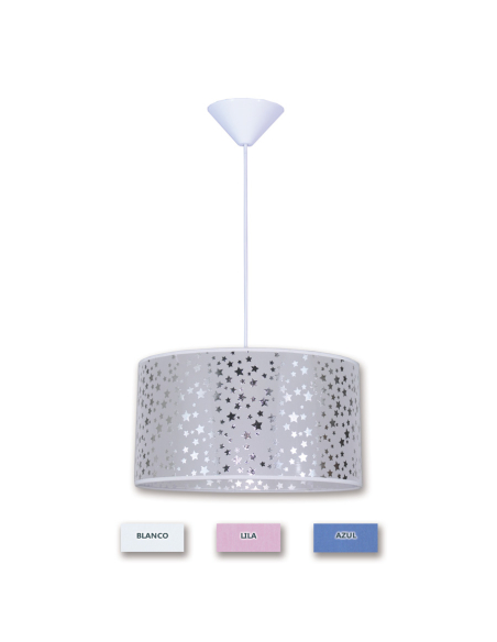 La lámpara de techo infantil Destello crea una sensación mágica gracias a los múltiples destellos obtenidos por las decenas de estrellas brillantes. Un modelo lleno de fantasía e ilusión, de sencillo diseño, óptimo para los más pequeños de la casa. Tiene capacidad para una bombilla E27 y unas medidas de 35 x 20 cm, perfecta para dormitorios de tamaño pequeño o mediano. Llena de alegría y magia su espacio personal.