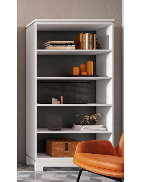 Práctico Librero alto Vega todo estantes, un precioso módulo de la colección Vega perfecto para organizar tus libros preferidos, figuras, álbumes de fotos, y todo lo que tú desees. Un mueble compacto, de alta calidad, hecho con madera de pino maciza y barnizado o lacado según tu elección de colores. Descubre los distintos módulos de esta colección para crear una composición de salón única.