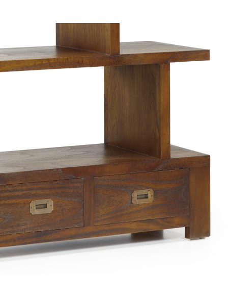 Aprovecha la exclusividad que aportará a tu hogar esta librería Star irregular con separadores y tres cajones que encajará a la perfección en un rincón de tu despacho o del salón. Muy decorativa y funcional, gracias a sus tres cajones de la zona inferior donde podrás guardar papeles y alguna carpeta. La zona de estantería está formada por cuatro largos estantes de madera que quedan abiertos en los extremos, como volados, y que quedan reforzados por unos separadores verticales que se ubican de manera irregular creando un bellísimo resultado.