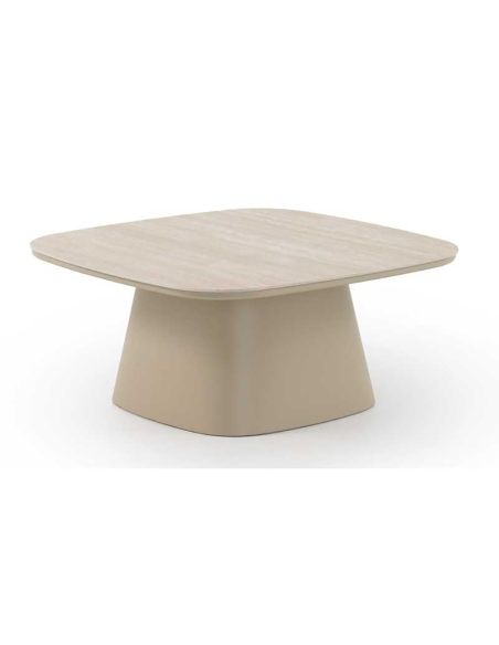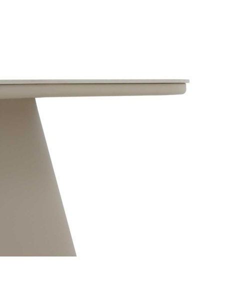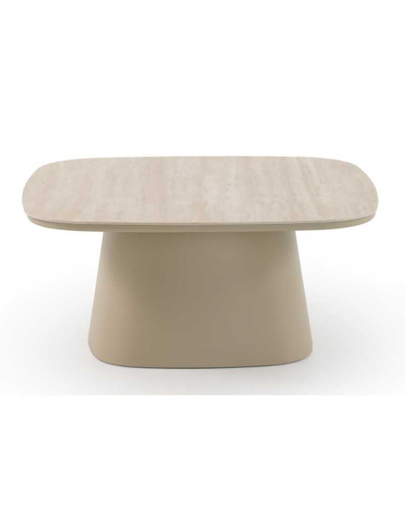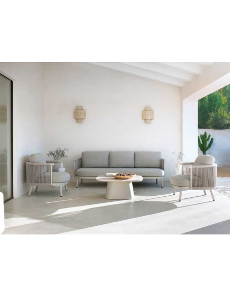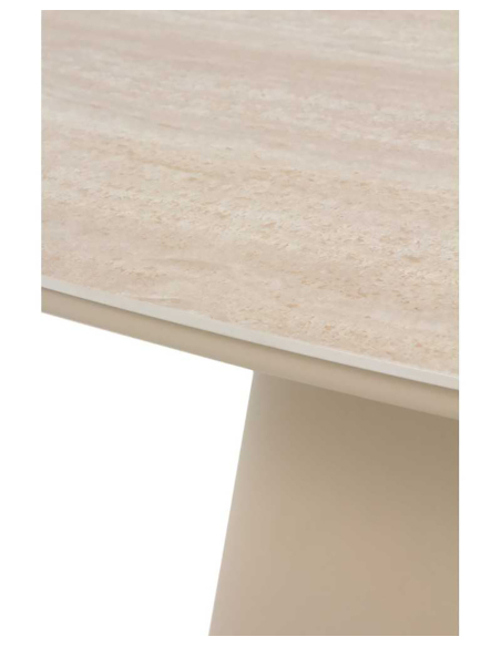 Mesa de comedor exterior Amura redonda aluminio cerámica travertino