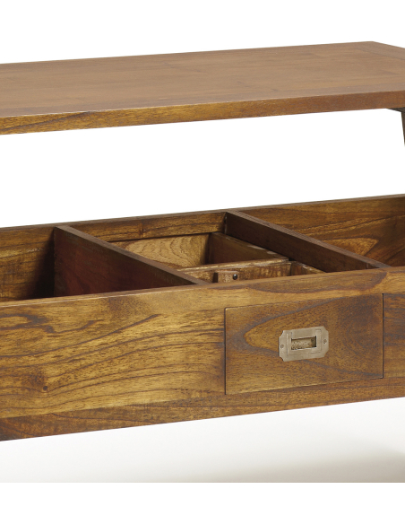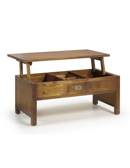 Te invitamos a que accedas al estilo colonial de la colección Star donde podrás conocer las grandes ventajas de la mesa centro Top Star dos cajones elevable. Olvídate de los problemas de espacio con esta pieza gracias a su medida de tan sólo 110 x 56 cm. Destacan en ella sus dos cajones centrales ubicados en el centro de cada uno de los dos lados largos. Se apoya en cuatro patas cuadradas que quedan reforzadas en los lados cortos por dos tableros que cubren ambos costados sin llegar hasta el suelo. Lo más destacable quizá de la pieza sea su sistema elevable que te permitirá sacar una merienda o servir una cena de un modo más cómodo.