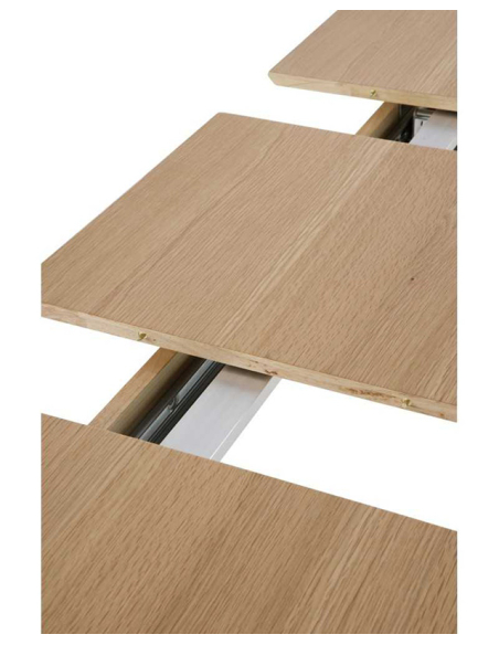 Mesa de comedor Diamante extensible 160/200 cm, destaca por su diseño versátil y elegante, ideal para comedores modernos que buscan estilo y funcionalidad. Su tablero chapado en roble de 2 cm de grosor ofrece una superficie robusta y de acabado natural, mientras que las esquinas redondeadas garantizan seguridad sin perder estética. Gracias a su sistema extensible automático, puede pasar de 160 a 200 cm de largo de manera sencilla, adaptándose a reuniones familiares o cenas con amigos. Las patas torneadas de madera de hevea aportan estabilidad y calidez, mientras que su capacidad para 6-8 personas la convierte en una pieza central perfecta para cualquier comedor.