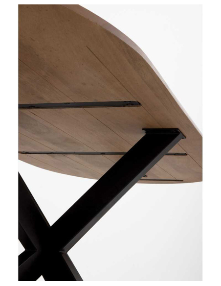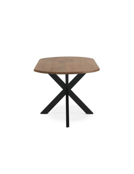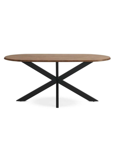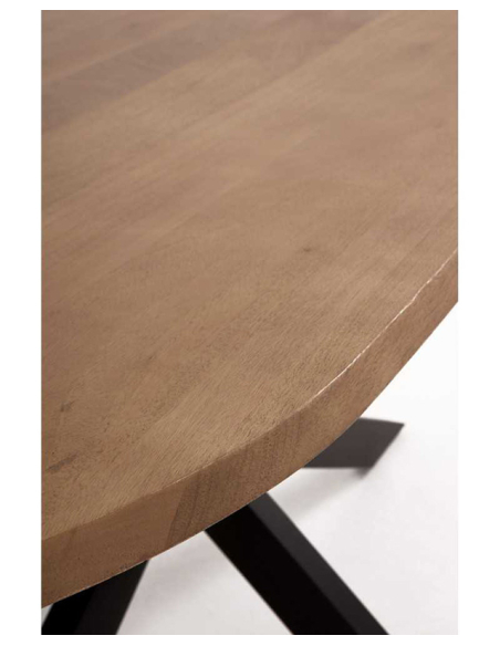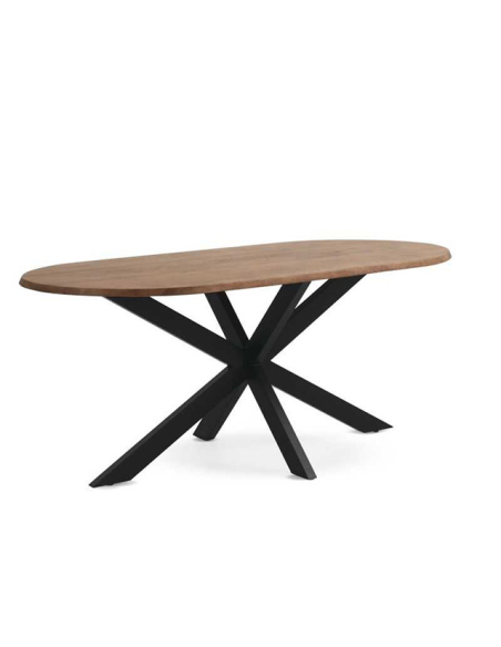 Mesa de comedor Amatista ovalada natural, diseñada para ofrecer funcionalidad y elegancia en tu hogar. Su tablero de madera maciza de acacia de 2,5 cm de grosor aporta resistencia y calidez natural, mientras que su forma ovalada suaviza el ambiente y facilita la circulación alrededor de la mesa. El pie central metálico en color negro combina estabilidad y diseño contemporáneo, ofreciendo un soporte sólido sin sacrificar la estética. Con capacidad para 8 comensales, esta mesa es ideal para cenas familiares, reuniones con amigos o momentos especiales, integrándose perfectamente en comedores modernos y espacios de estilo natural y sofisticado. Su combinación de materiales de calidad y líneas elegantes la convierte en una pieza central que realza cualquier decoración.