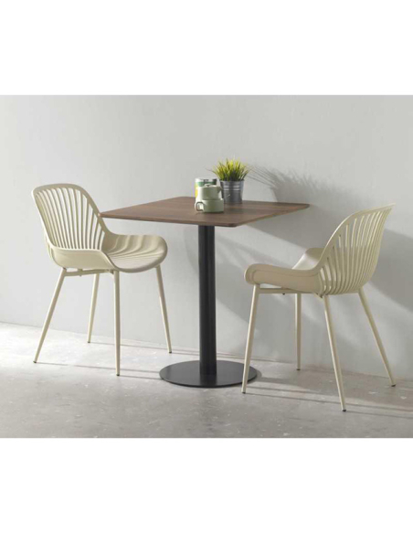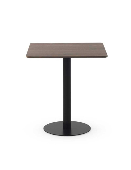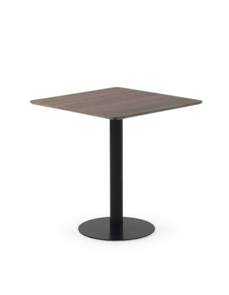 Mesa de comedor Hematita nogal, su tablero de melamina en tono nogal combina elegancia y facilidad de limpieza, mientras que el pie central metálico negro aporta estabilidad y un diseño moderno. Ideal para espacios reducidos o rincones de comedor, su forma cuadrada permite organizar cómodamente hasta 4 personas. Perfecta para cenas íntimas, desayunos o reuniones rápidas, esta mesa combina funcionalidad y estilo en un solo mueble.
