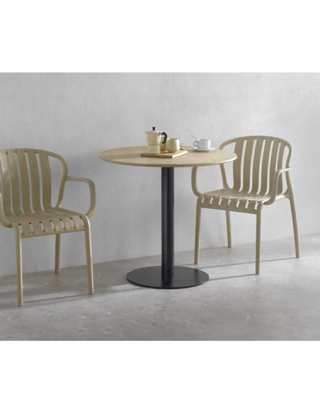 Mesa de comedor Hematita fresno 80 cm, combina funcionalidad y diseño moderno para espacios reducidos y comedores acogedores. Su tablero redondo de melamina color fresno aporta luminosidad y un toque natural, mientras que el pie central metálico negro ofrece estabilidad y resistencia. Ideal para 4 personas, esta mesa es perfecta para desayunos, cenas íntimas o reuniones casuales. Su diseño versátil permite integrarla en diferentes estilos decorativos, desde contemporáneo hasta minimalista, convirtiéndola en un elemento práctico y elegante que realza cualquier ambiente.