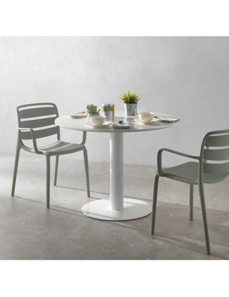 Mesa de comedor Hematita blanco 80 cm, combina un diseño minimalista con practicidad, perfecta para comedores pequeños o rincones de cocina modernos. Su tablero redondo de melamina blanca aporta luminosidad y sensación de amplitud, mientras que el pie central metálico en blanco asegura estabilidad y resistencia. Ideal para 4 personas, esta mesa se adapta a diferentes estilos decorativos, ofreciendo un espacio funcional para desayunos, cenas íntimas o reuniones casuales. Su acabado limpio y elegante convierte cualquier ambiente en un espacio moderno y acogedor.