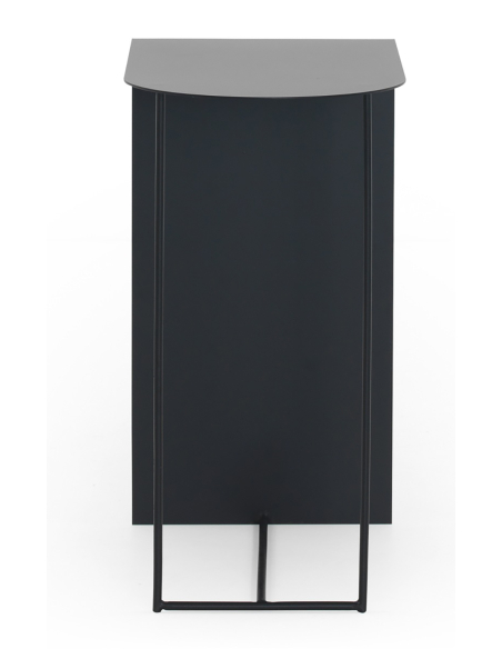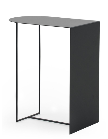 Mesa auxiliar Bolina metálica negra grande, su diseño de media luna, ideal para arrimar a la pared, y su estructura de metal negro mate la convierten en una consola ligera o una mesa auxiliar estilizada perfecta para salones, entradas o pasillos más amplios. Su forma semicircular y su estructura fina aportan un toque de diseño sutil y contemporáneo. Ofrece una superficie de apoyo más amplia para lámparas, objetos decorativos, libros o incluso para dejar el correo al llegar a casa. Su acabado negro mate combina fácilmente con cualquier decoración. Disfruta de su diseño depurado nada más recibirla, ya que no requiere montaje. La mesa Bollina grande es una opción excelente para quienes buscan una pieza auxiliar elegante, funcional y con un diseño minimalista que aporte estilo sin sobrecargar el espacio.