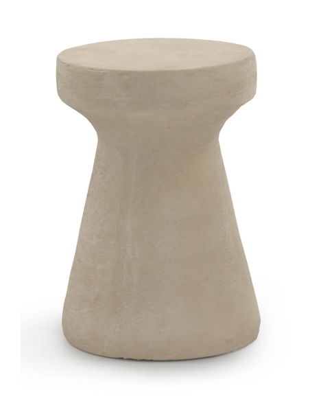 Mesa auxiliar Nereida cemento arena de poliresina, con una textura rugosa tipo cemento, esta pieza destaca por su elegante forma cónica que culmina en un tablero redondo. Su diseño geométrico y su color arena crean una combinación armoniosa y muy actual. Ideal como punto de apoyo en el salón, como mesita de noche o como base decorativa. Su silueta estilizada y su acabado natural la hacen perfecta para interiores de estilo Wabi-Sabi, mediterráneo, bohemio o moderno que busquen un toque orgánico. La base cónica asegura una buena estabilidad. Exclusivamente para uso interior, la mesa Nereida como es una pieza funcional y estéticamente agradable. Su diseño simple pero efectivo y su acabado texturizado en arena aportan calidez y un toque de diseño sofisticado a cualquier espacio.
