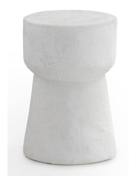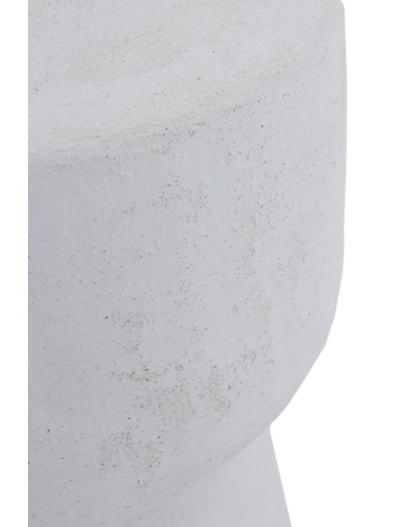 Mesa auxiliar Carena cemento blanco geométrico, realizada en poliresina con una textura tipo cemento, esta pieza única combina una base robusta con una parte superior redondeada, creando una silueta orgánica y moderna que recuerda a formas totémicas. Su acabado blanco mate resalta su volumen y forma. Ideal como mesa auxiliar singular, mesita de noche artística o elemento decorativo independiente. Su diseño abstracto y su textura rugosa aportan un toque contemporáneo y minimalista, perfecto para ambientes modernos, Wabi-Sabi o espacios que busquen piezas con personalidad y un aire escultórico. Exclusivamente para uso en interiores, esta mesa auxiliar es una fusión de arte y funcionalidad. Su diseño "combinado" en blanco la convierte en un punto focal limpio, interesante y lleno de estilo.