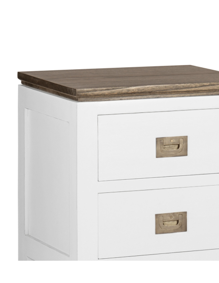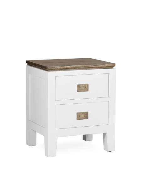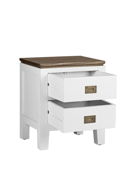 El estilo sencillo y liso de esta colección hace de esta mesita Everest una pieza diferente que aportará a tu hogar luz y calidez. Se trata de un mueble compuesto únicamente por dos sencillos cajones. La encimera es de un tono más oscuro la cual aporta contraste y hace de la pieza un conjunto combinado y redondo. Los tiradores tienen acabado en bronce para el mismo propósito. Además cuenta con patas para que no haya problemas a la hora de limpiar.