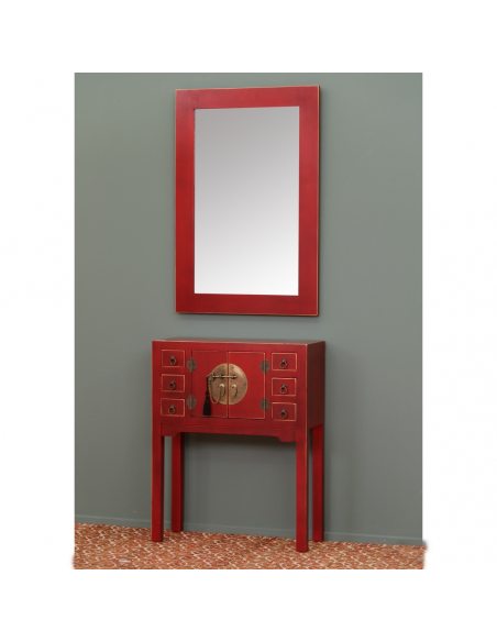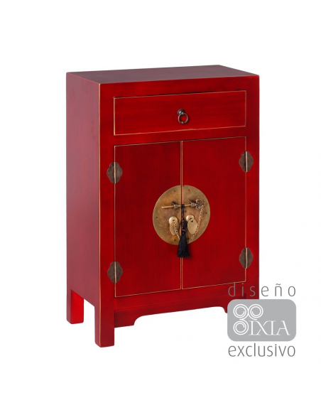 Mesita 2 puertas y 1 cajón rojo para darle a tu hogar un toque diferente con el estilo oriental y contrastar con su color rojo.