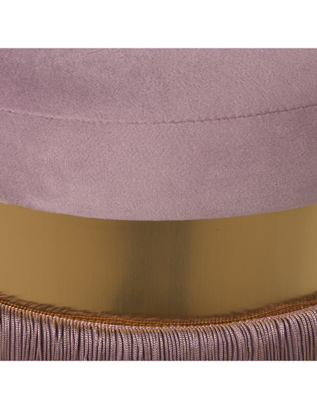 Puff rosa con flecos perfecto como asiento extra; es la pieza que no puede faltar en tu hogar.