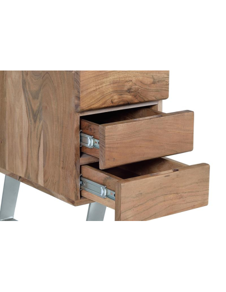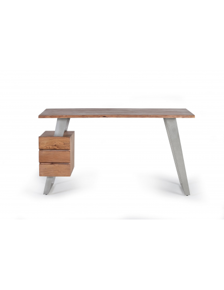 Escritorio madera y metal con tres cajones. Escritorio con un diseño original que presenta las patas en metal con cajones integrados en madera de acacia al igual que la tapa.